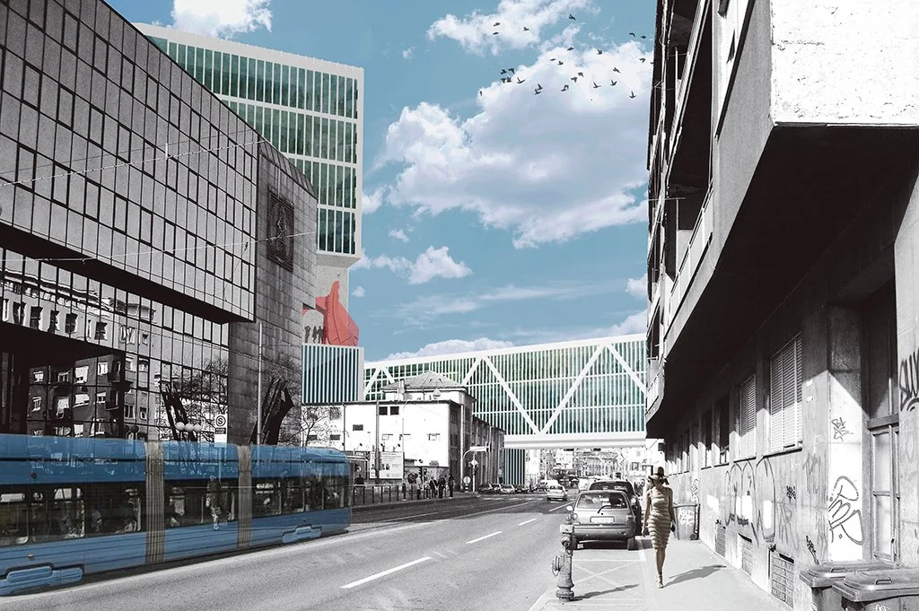 Floating perimeter block buildings enclose a historic site in Zagreb, defining public squares and showcasing its heritage structures