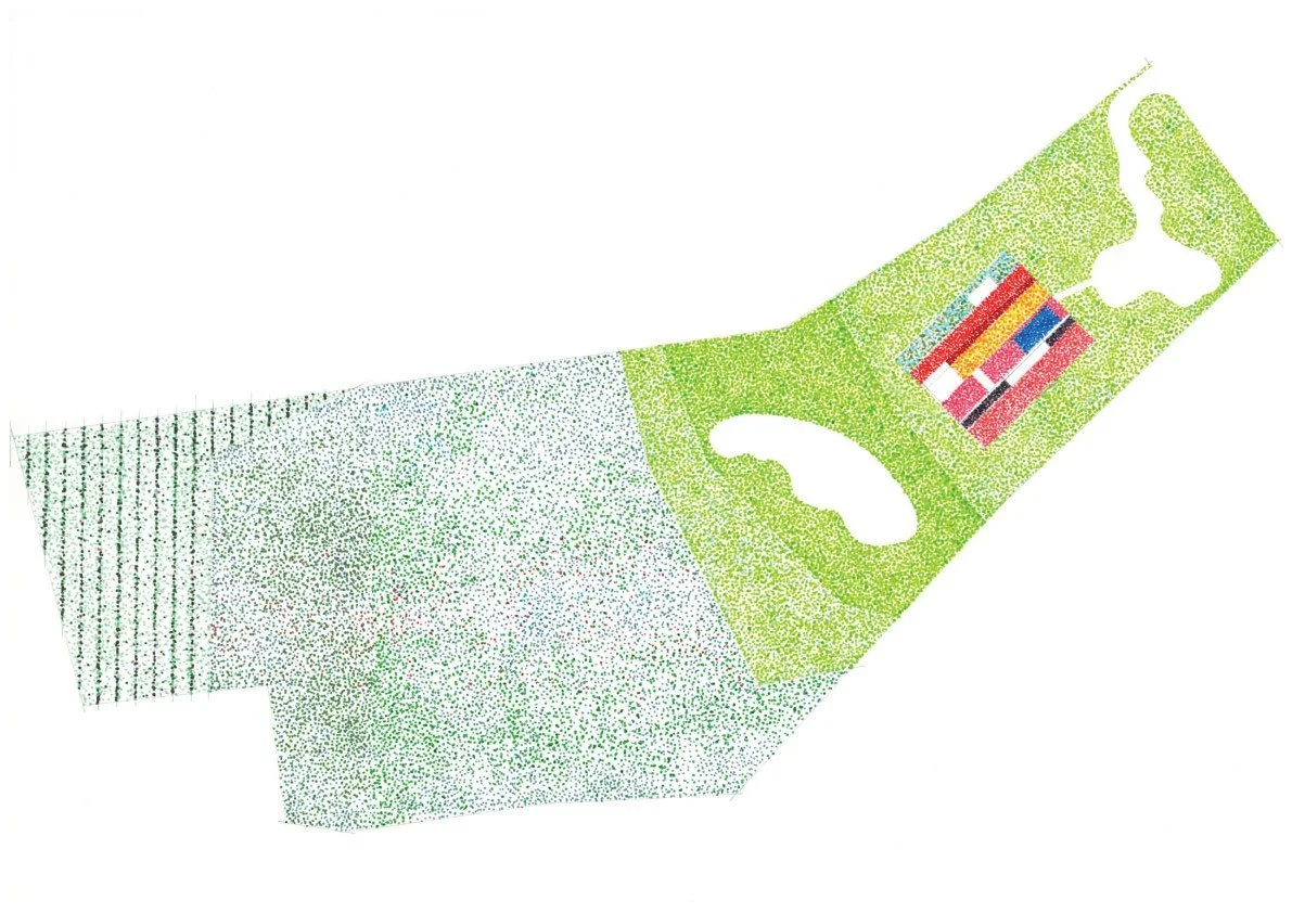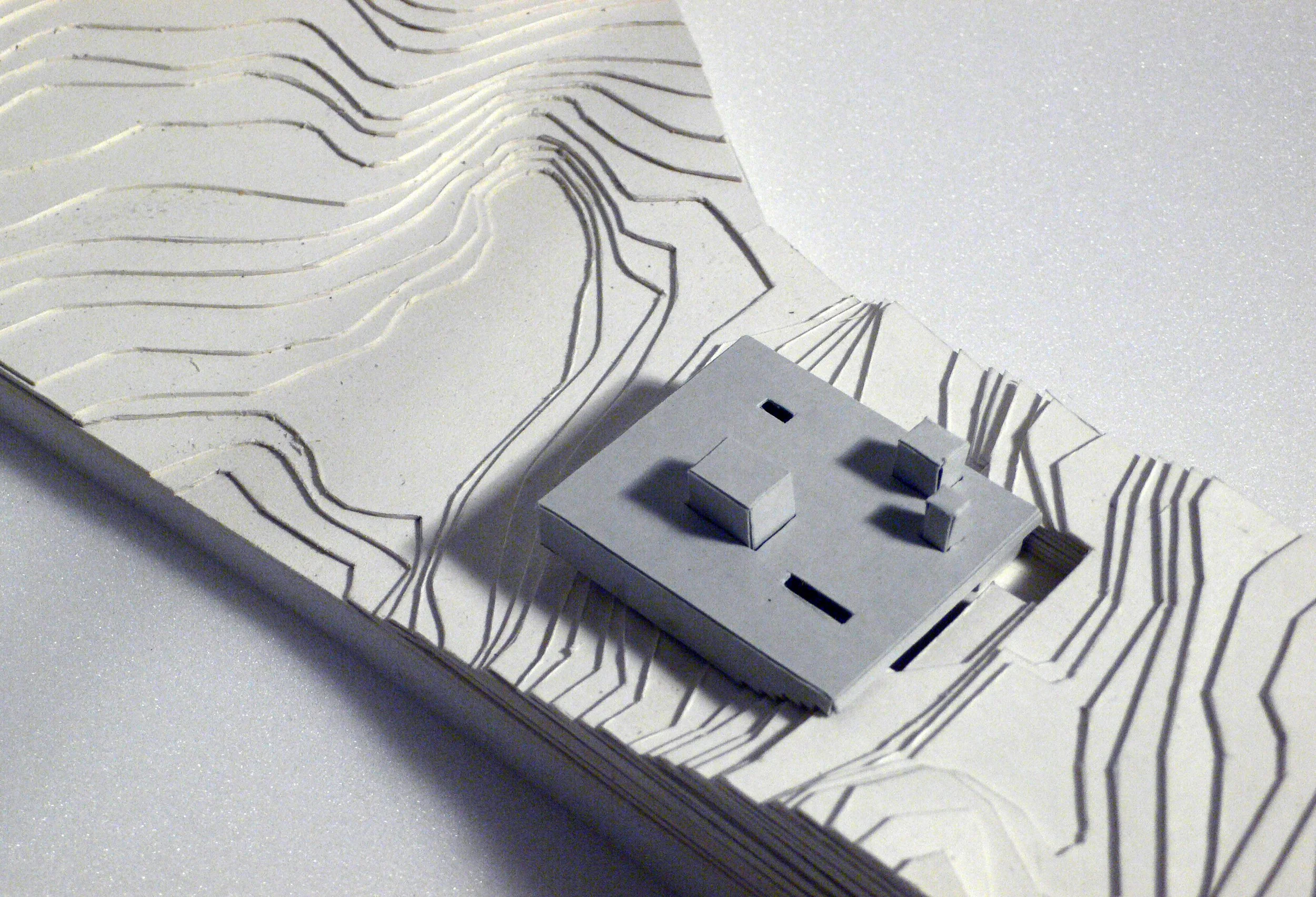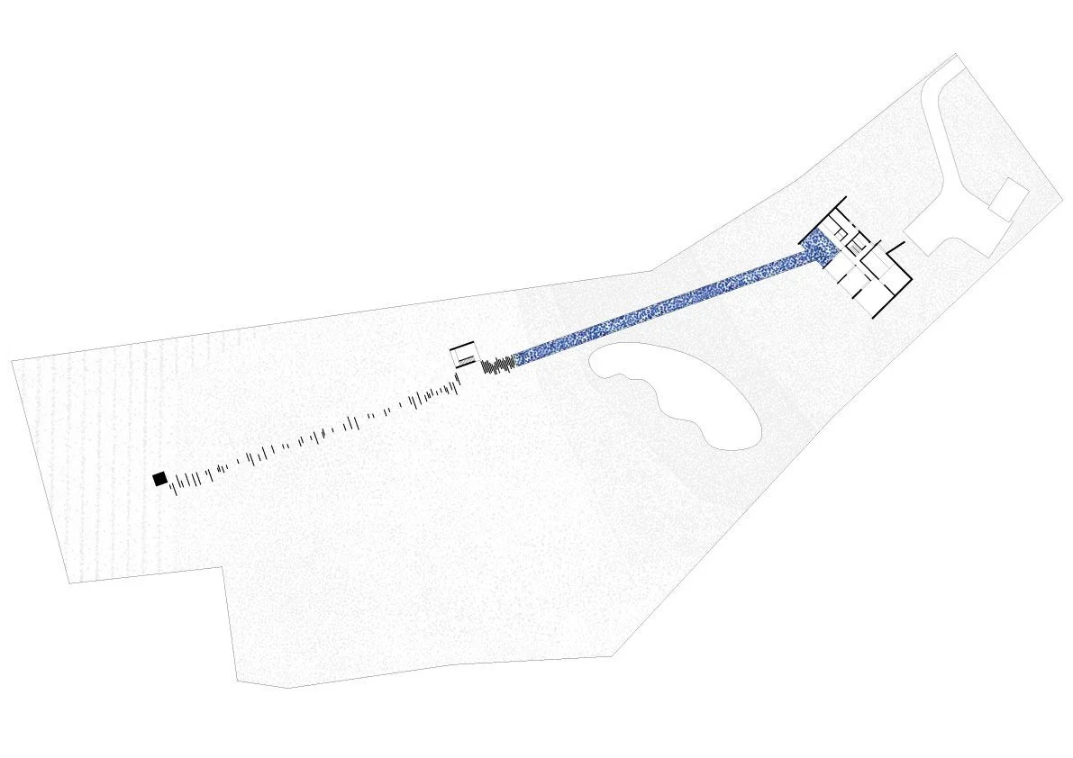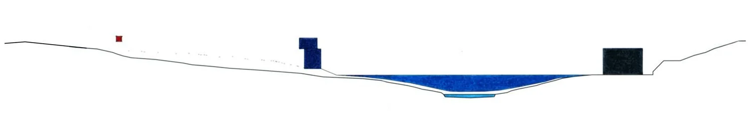 This option invites visitors to reconnect with and be inspired by nature. The design adds a guest pavilion across the pond from the main house. An elongated pool leads through the valley and around the side of the pond, linking the two structures. To access the pavilion, visitors swim from the main house, plunging themselves into the water in a confrontation of nature. Once they reach the pavilion, they find a space of solitude that eschewed the conveniences of everyday life—including running water electricity—that encourages simple living in communion with the land.