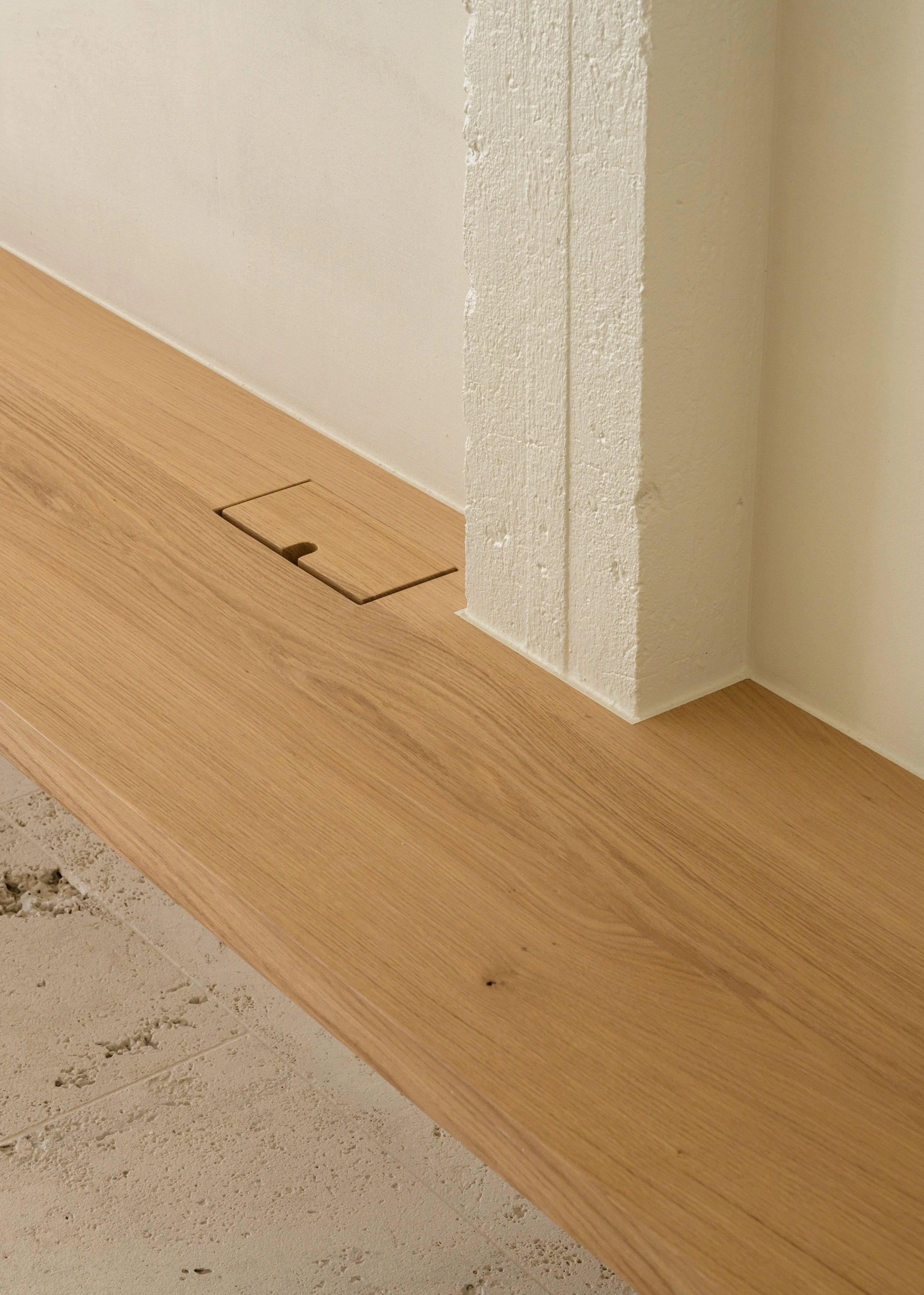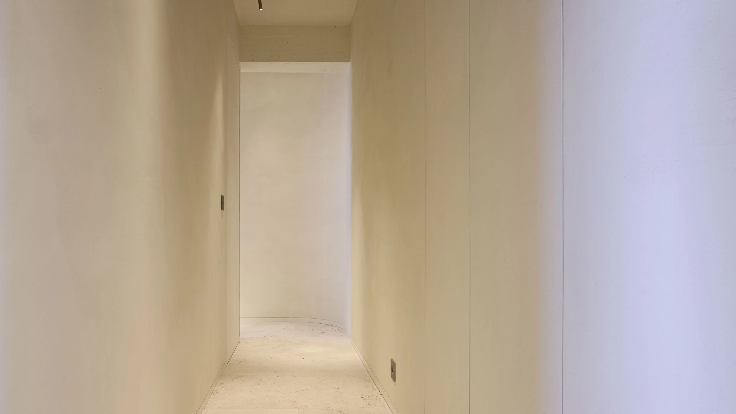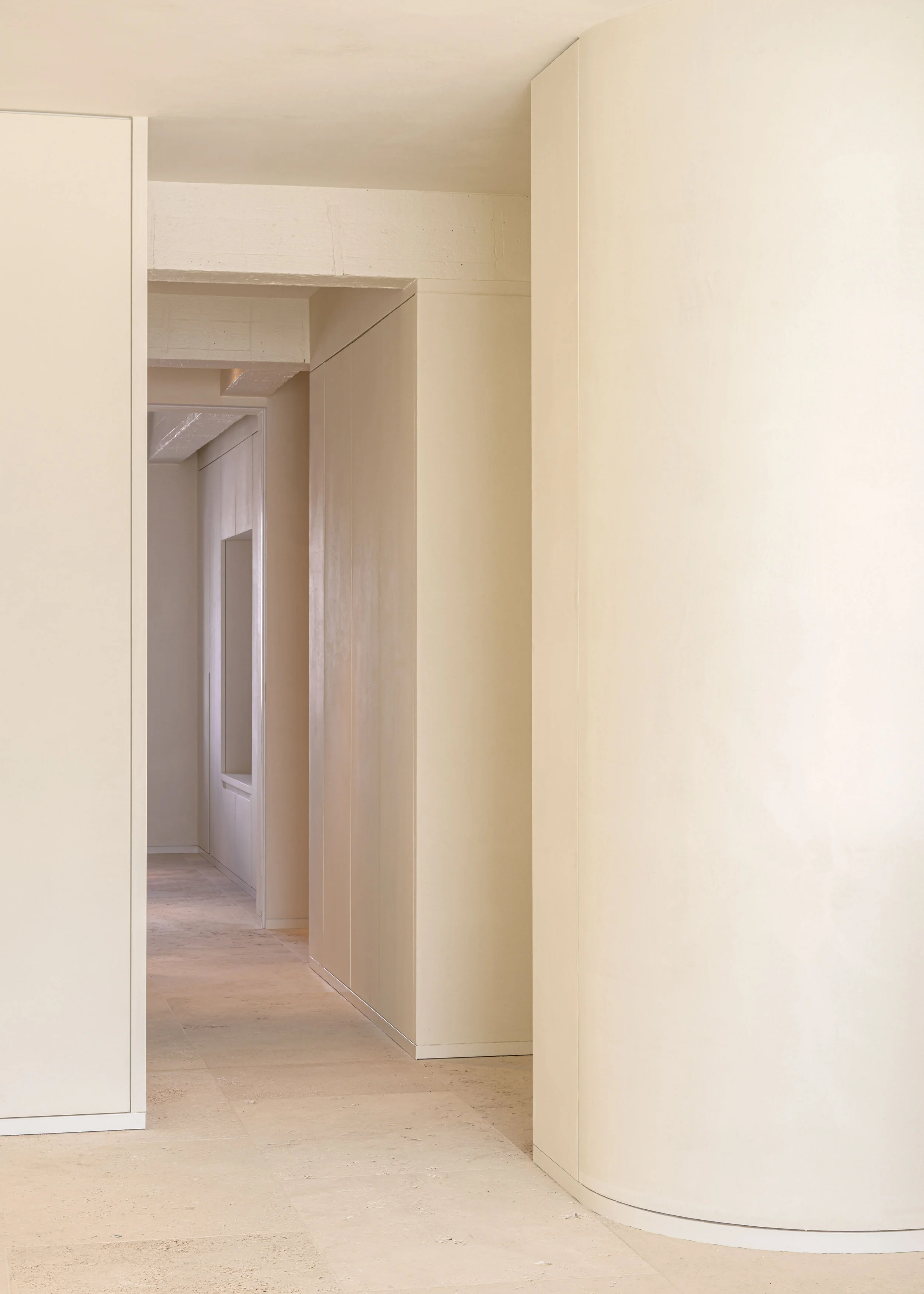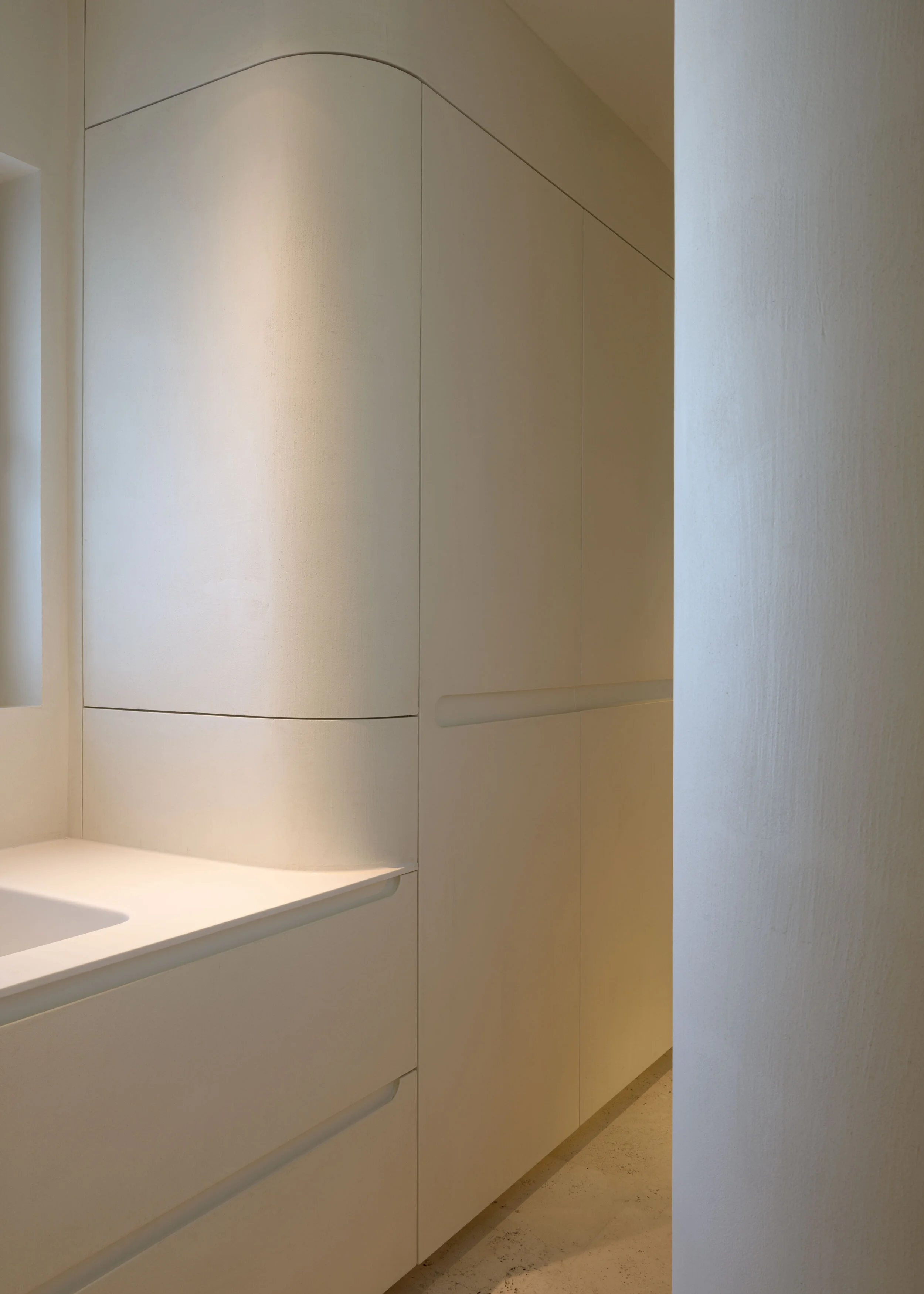 A network of storage, installations and smart technologies are concealed behind the neutral surfaces of the apartment.